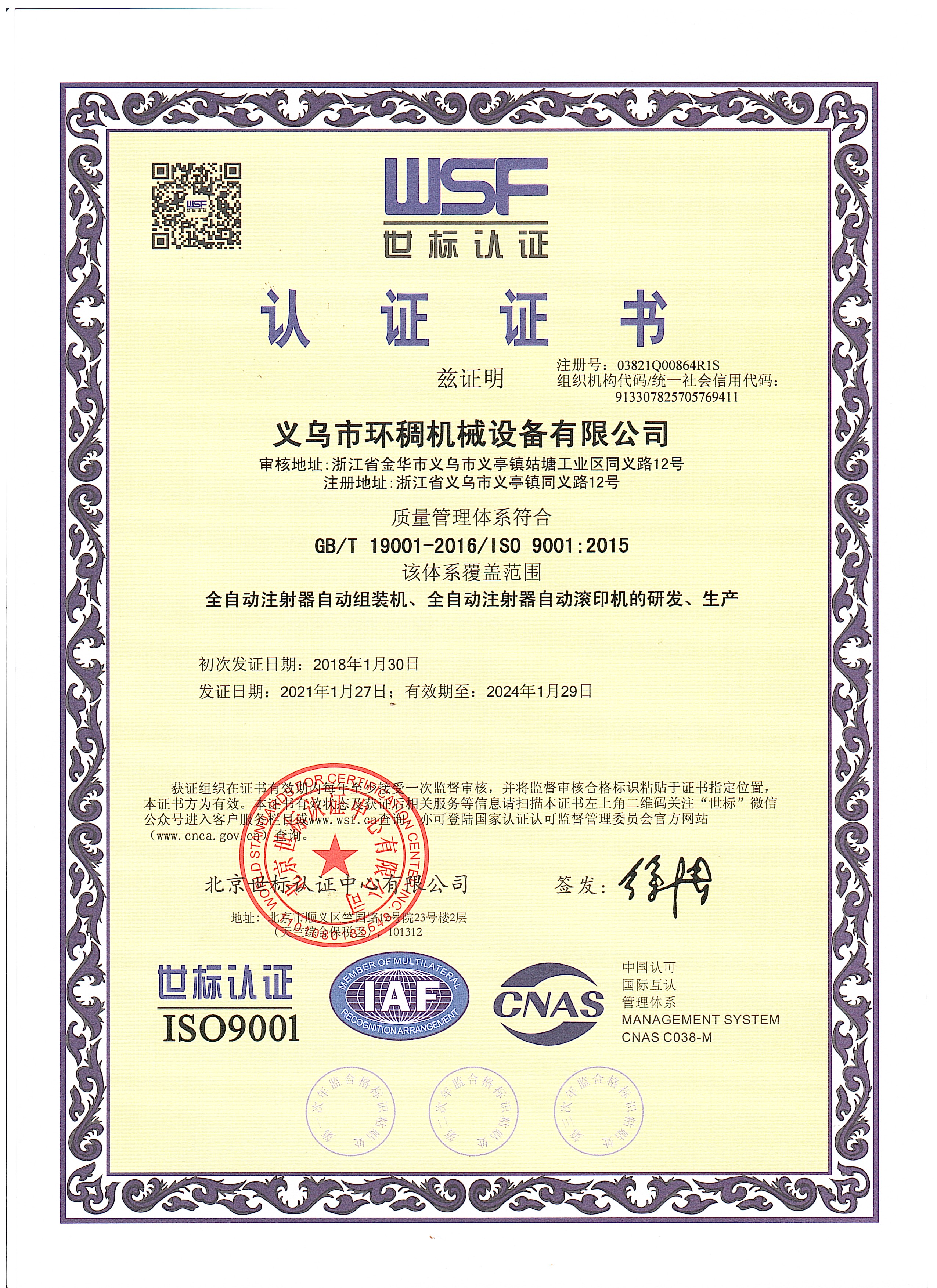 交9000認證證書